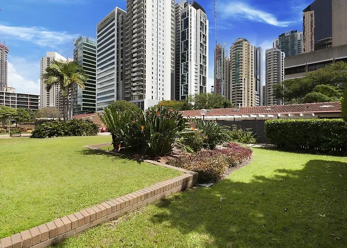 Das Hotel The Gardens Apartments Brisbane ist eine tolle Unterkunft im Stadtteil Brisbane CBD, ungefähr 15 Gehminuten von der South Bank entfernt. Das Aparthotel verfügt über einen Privatparkplatz für 2 $ pro Tag vor Ort.